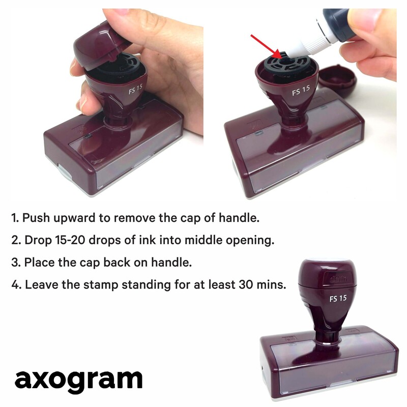 Personalize your cartooon face and text in this colourful pre-inked rubber stamp.